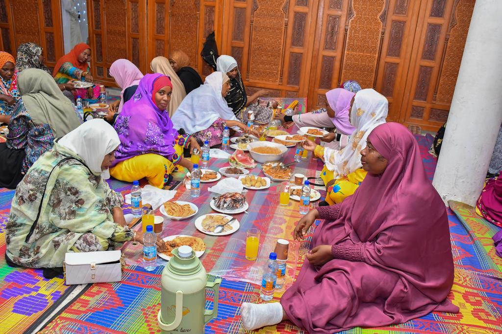 Leaders and various citizens who attended a special prayer for the President of the United Republic of Tanzania, Her Excellency Dr. Samia Suluhu Hassana,and an Iftar organised by the Youth Union of the Revolutionary Party in collaboration with Madrasat Annujum.- 1